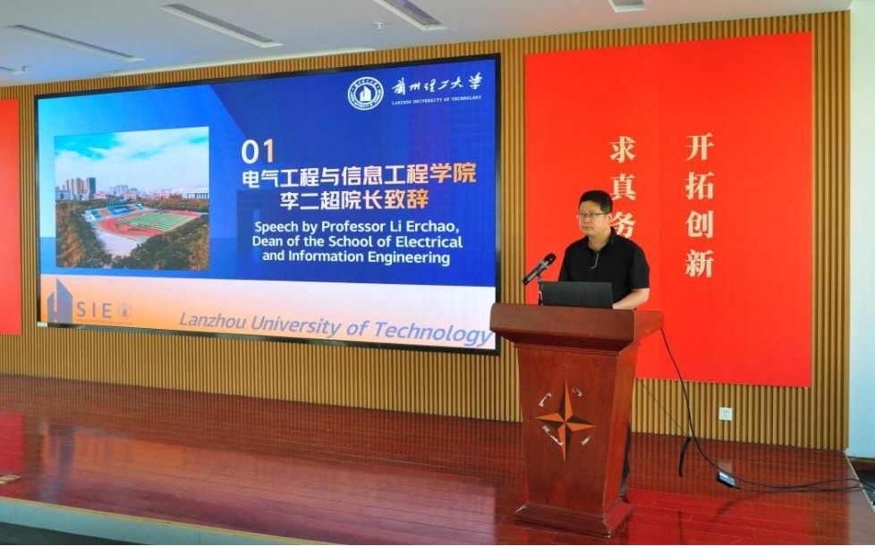 电信学院院长李二超致辞,他介绍了电信学院作为甘肃省电子信息类学科高地的学科实力、平台支撑与社会服务情况,阐述了项目“三维融合”学习体系及“专家导师+博士组长+硕士助教”专业指导团队,期待学员用跨文化视角重构AI伦理边界,用青年智慧回答“技术向善”的时代命题。