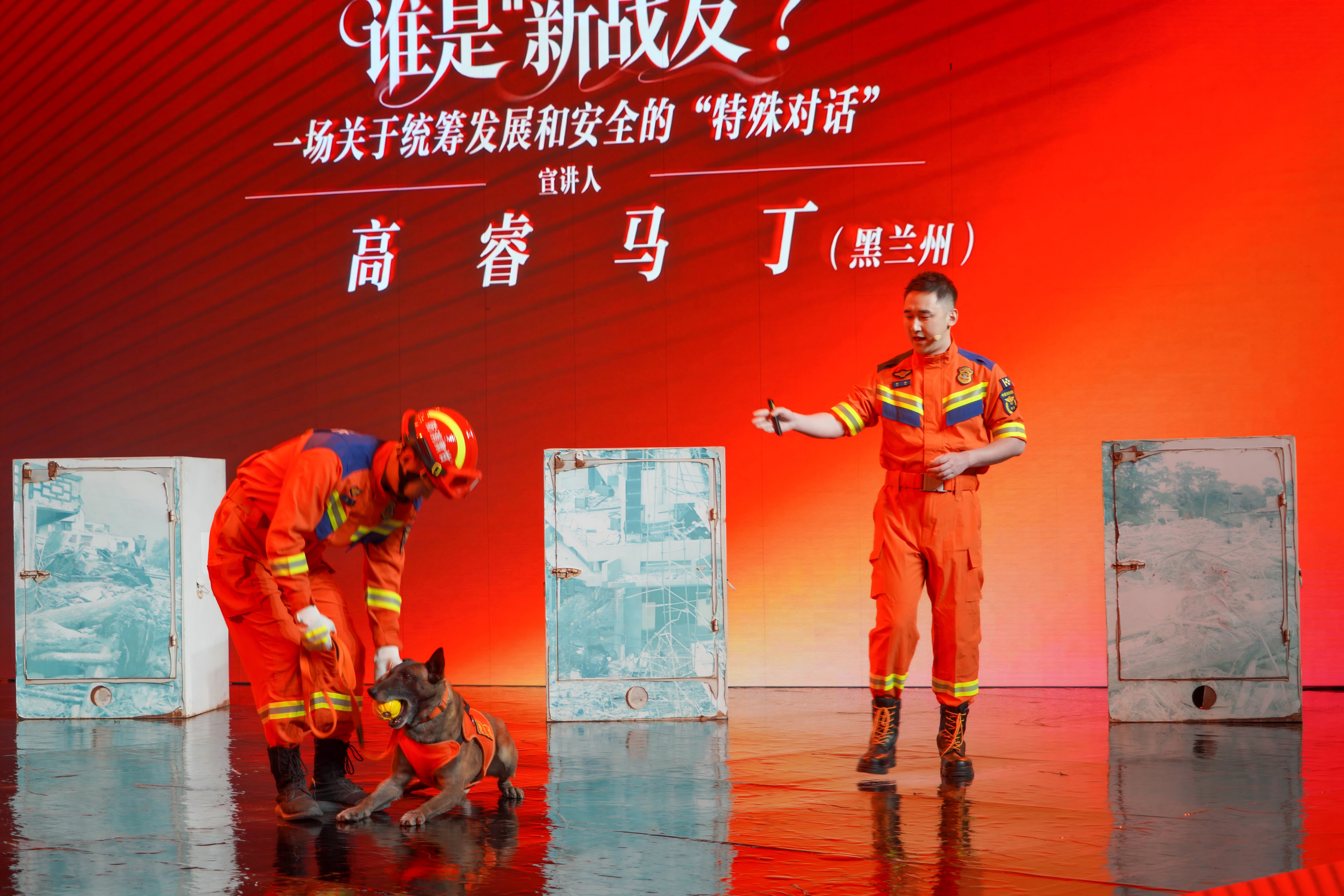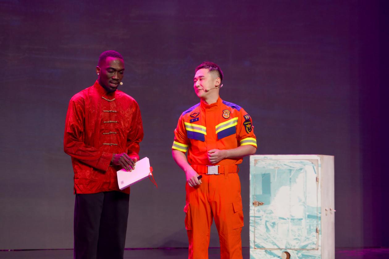 作品紧扣党的二十届四中全会精神,创新性地将国际视角融入理论宣讲:马丁以刚果(布)消防志愿者的身份,结合在中国的留学时光与志愿服务经历,与主讲人展开跨越国界的深度交流。作为中外文化交流的积极参与者和生动践行者,马丁在此次宣讲中绝非简单的助演嘉宾,而是以关键“对话者”的身份,绽放出独特的跨文化魅力,他从国际友人的立场出发,表达了对中国“人民至上、生命至上”理念的深刻认同,分享了对中国特色大国应急管理体系的鲜活观察,更从“人类命运共同体”的高度,阐释了安全治理文化国际交流的深远意义。这份兼具国际视野与人文温度的表达,让宏大的理论变得鲜活可感,生动印证了“统筹发展与安全”的中国智慧不仅属于中国,更能为世界提供借鉴,也让文明互鉴的种子在宣讲现场生根发芽。
